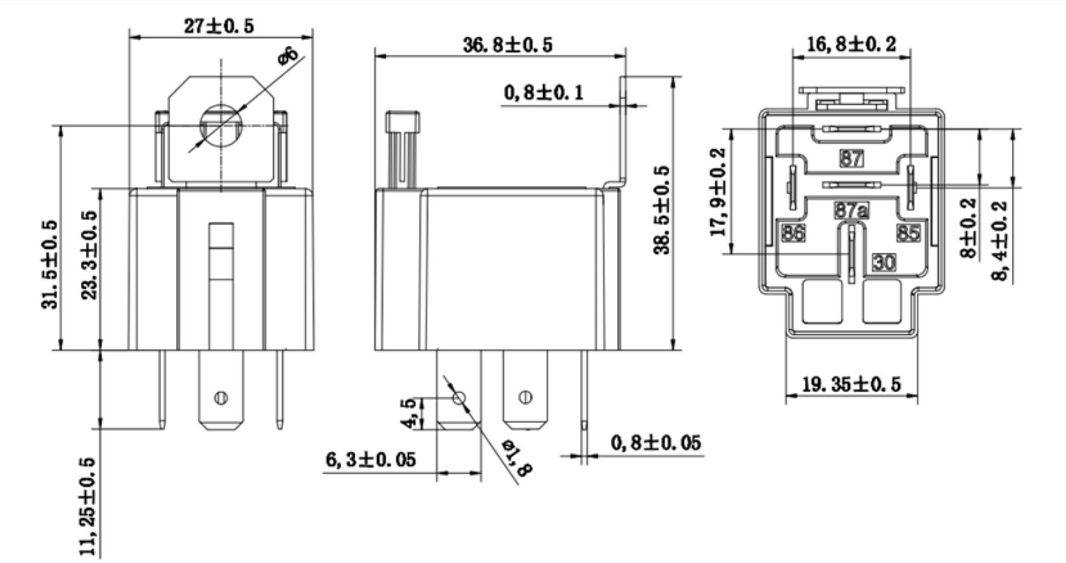 | Rated Load(Resistive load) | 1A: 40A 13.5VDC 1C: NO/NC 30A/20A 13.5VDC |
